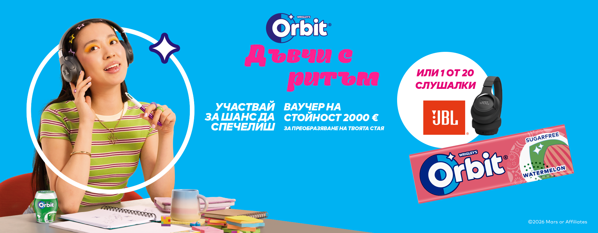 Пребиваващи в България 18+. Изискват се Интернет достъп и имейл. За да участвате, сканирайте QR кода или отидете на https://www.Yourchewyplace.com/bg-bg, за да регистрирате данните си. Имате шанс да спечелите една от следните награди: Голяма награда- 1 бр. ваучер за пазаруване от IKEA на стойност 2.000€ за преобразяване на твоята стая. Малки награди:-20 слушалки JBL с шумопотискане. Регистрациите трябва да бъдат направени между 01.02.2026 г. и 31.03.2026 г., вкл. Не е необходима покупка; максимум 1 участие на човек на ден (00:00:00 - 23:59:59); максимум 10 участия за цялото времетраене на играта. Участниците могат да спечелят максимум 1 награда в тегленето на награди, което ще се проведе на 06.04.2026 г. Вижте https://www.Yourchewyplace.com/bg-bg/terms-and-conditions за пълните ОУ и разпределение на всички предлагани награди. „JBL“ и „IKEA“ не са спонсори на Играта с награди. Организатор: „Марс Инкорпорейтед България“ ЕООД, със седалище в София, 1756, ул. „Лъчезар Станчев“ № 5, Софарма Бизнес Тауърс, сграда Б, 10-и етаж, ЕИК 831142767.