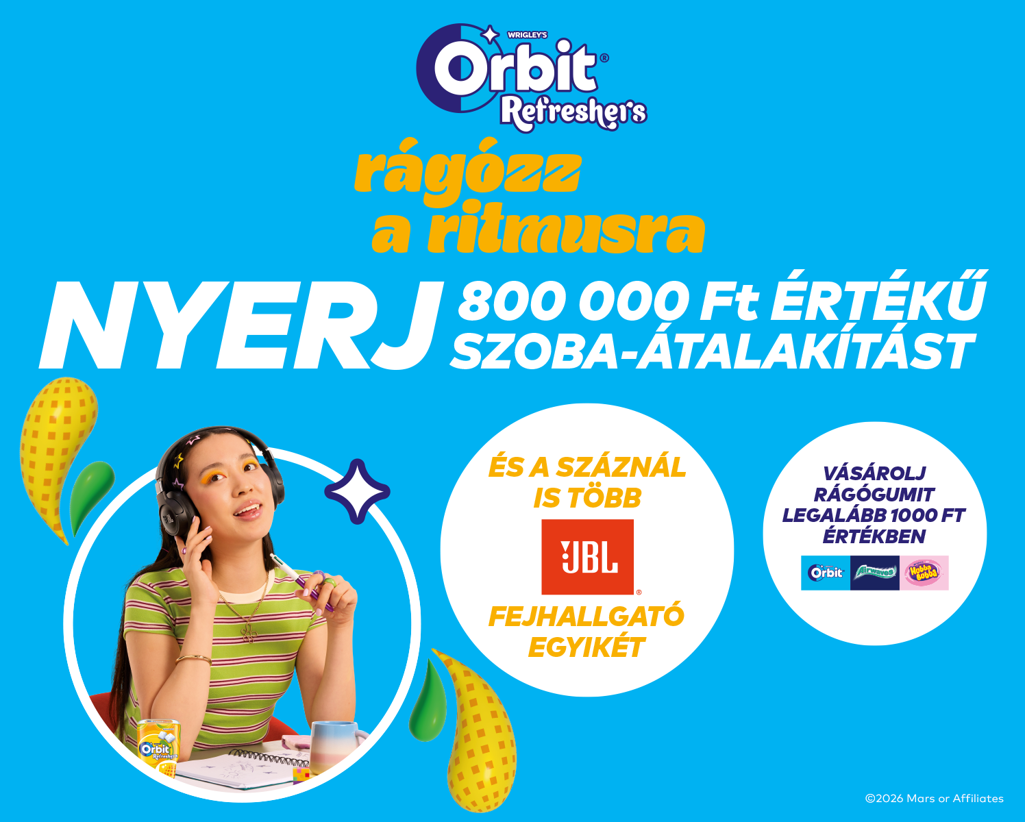 A Mars Magyarország Értékesítő Bt., (székhelye 1113 Budapest, Bocskai út 134-146. nyilvántartó bíróság: Fővárosi Törvényszék Cégbírósága; cégjegyzékszám: 01-06-118371; adószám: 28284202-2-44 (a továbbiakban: “Mars” vagy “Szervező”) a Játékszabállyal (a továbbiakban: „Játékszabály”) összhangban Orbit Rágózz ritmusra! elnevezésű játékot (a továbbiakban: "Játék") szervez azzal a céllal, hogy növelje a 4. pontban felsorolt termékek fogyasztói ismertségét.