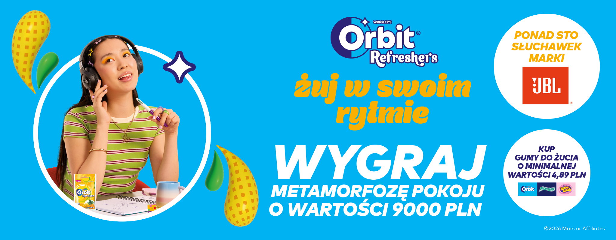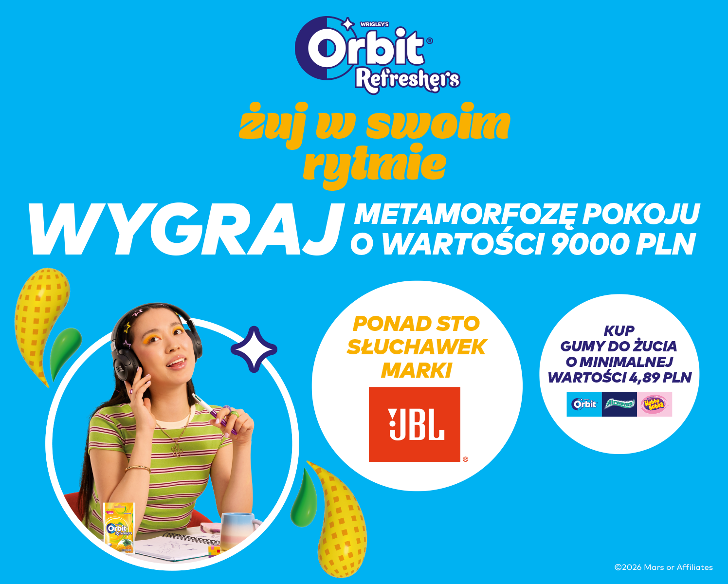 - Żucie: Żuj naturalnie, w rytm muzyki.